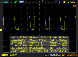 | 25 ms ... steigend ↗ und fallend ↘ kombiniert | ↗ 7 ms steigend | |