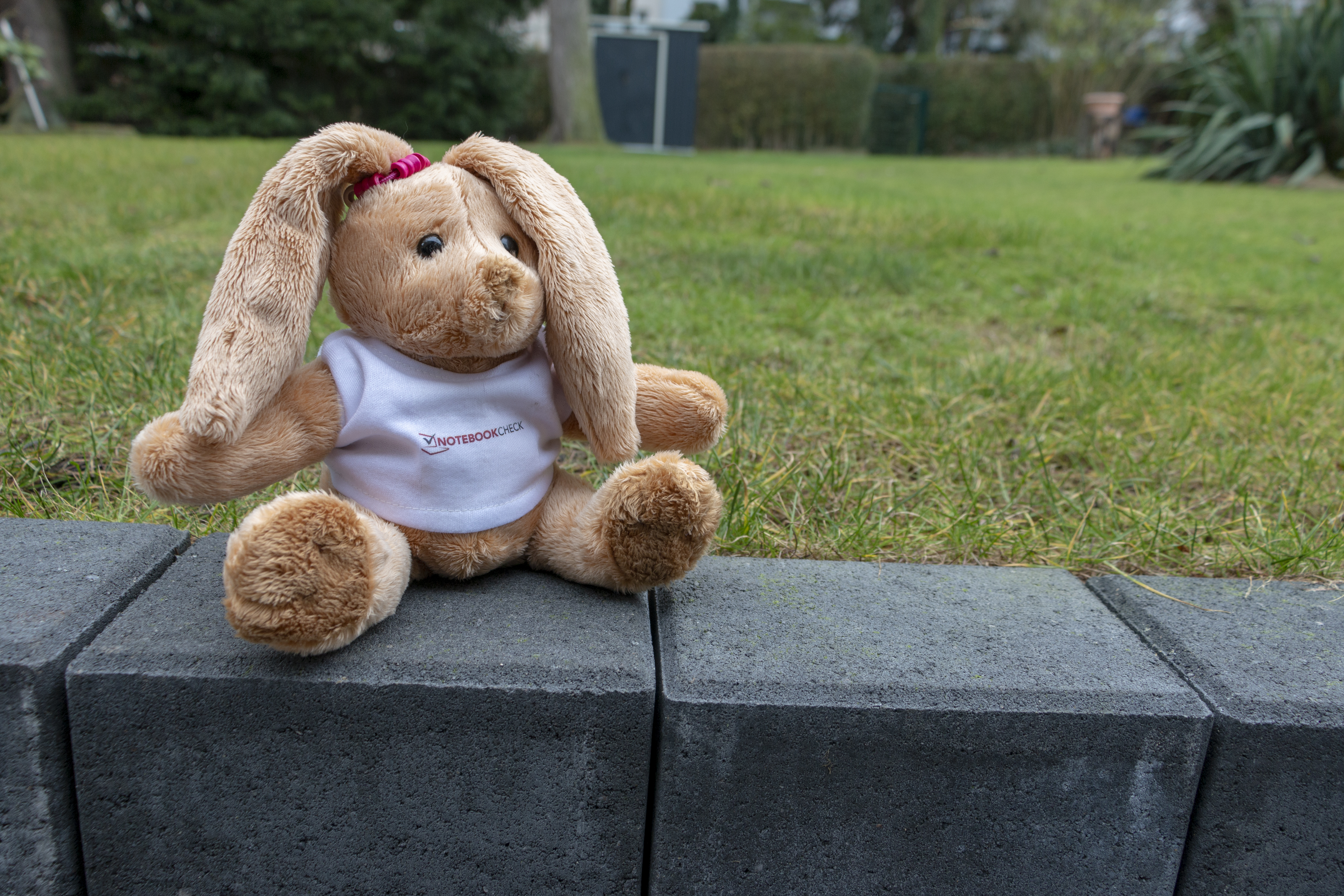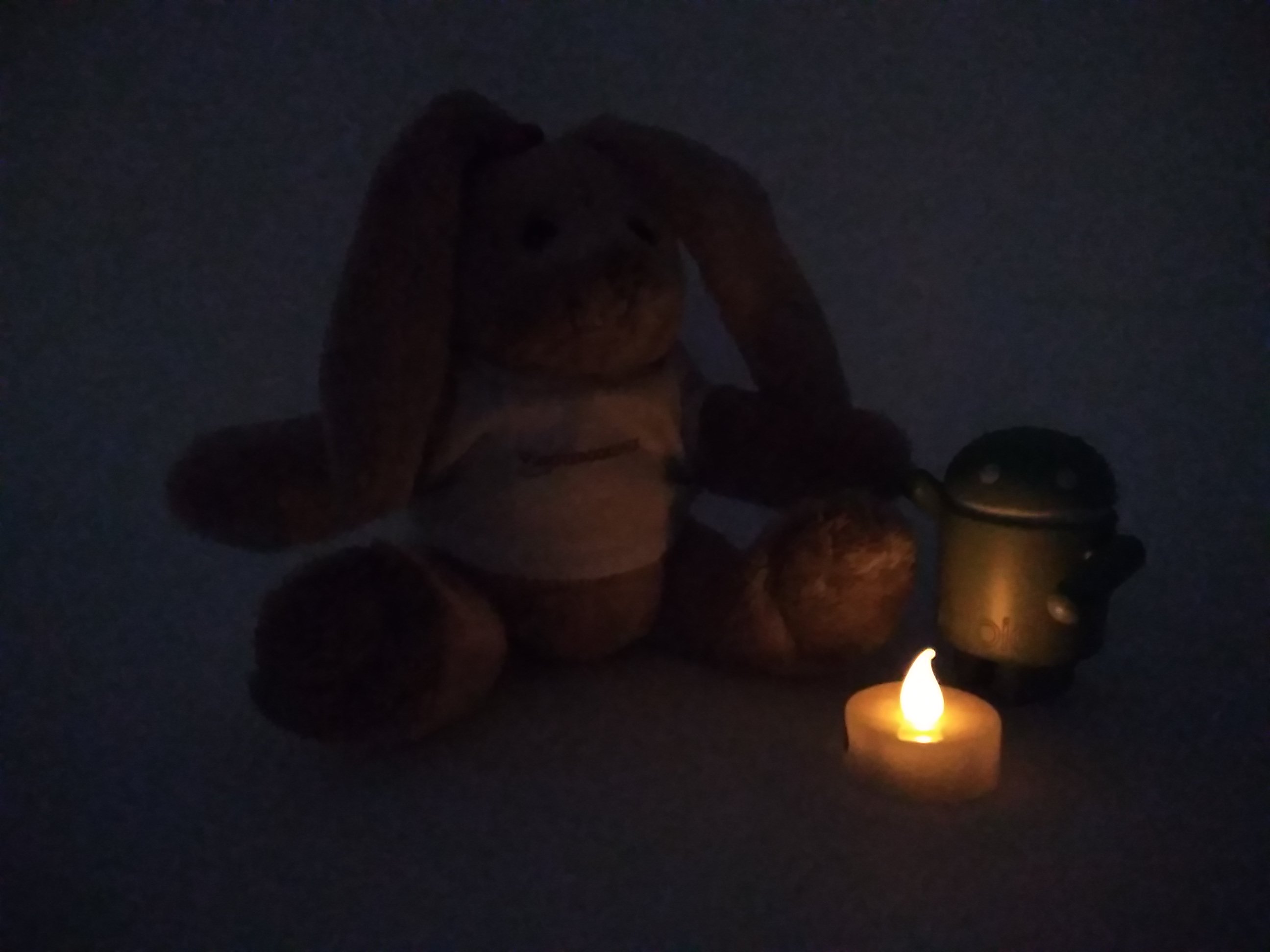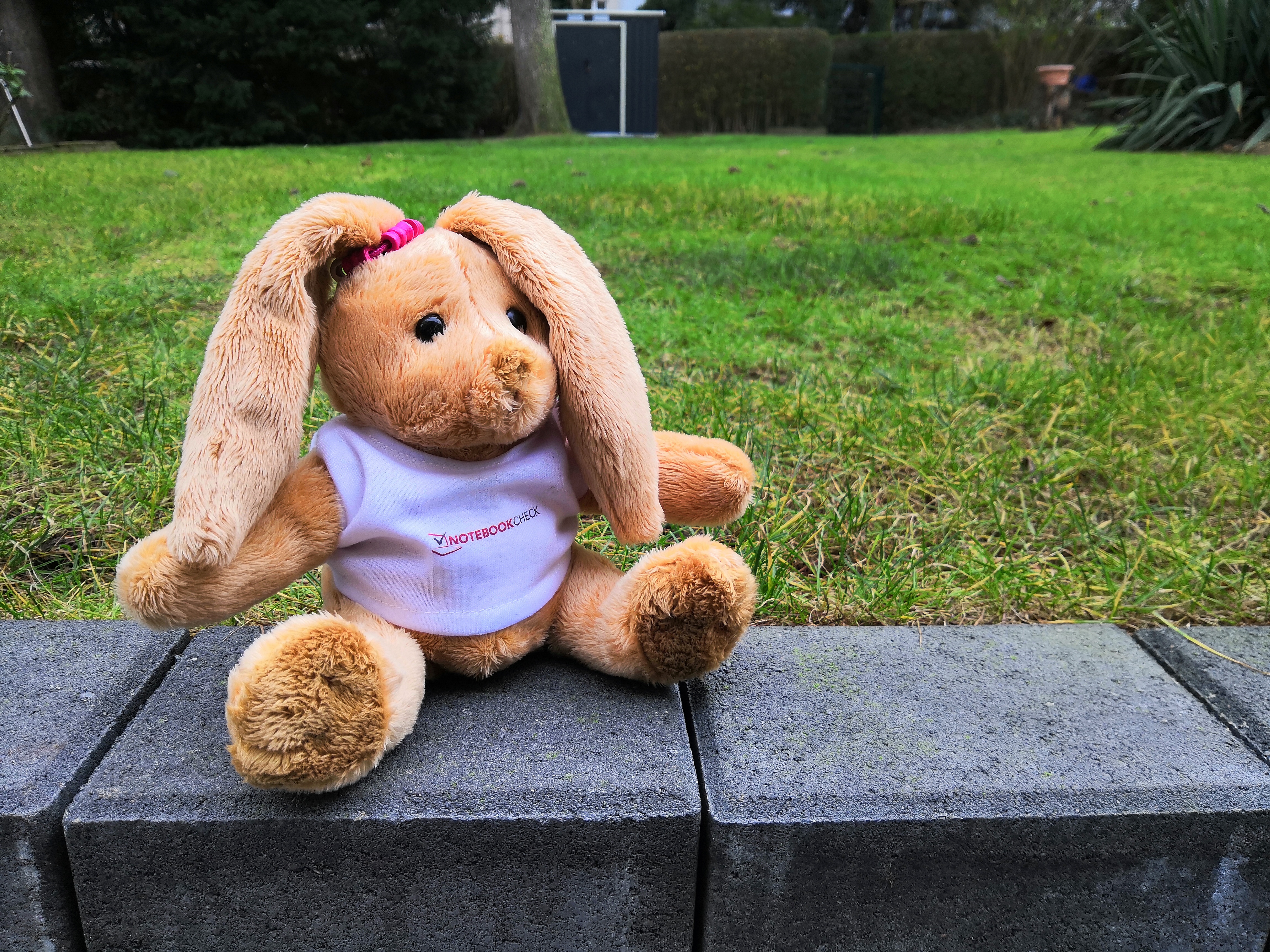 Mit dem Lenovo Tab M10 aufgenommene Fotos haben bestenfalls Schnappschussqualität. Bei farblich homogenen Flächen, in Szene 1 zum Beispiel bei den Steinoberflächen oder beim T-Shirt des Notebookcheck-Stofftiers, schafft es das Tab M10 nicht, feine Bilddetails herauszuarbeiten, sondern lässt sie im Pixelbrei untergehen. Dazu kommt eine ziemlich beherzt agierende Scharfzeichnung, die auch die Szene 2 plastischer, aber nicht allzu realistisch aussehen lässt. Schlechte Lichtverhältnisse wie in Szene 3 zu sehen, überfordern die Kamera dann endgültig.