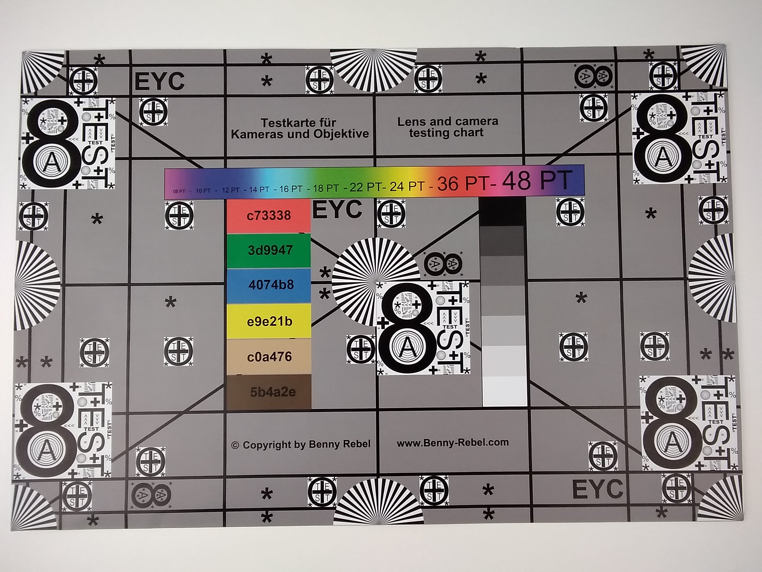 Szene 1Szene 2Szene 3Unter kontrollierten Lichtbedingungen haben wir uns die Kamera abschließend nochmal genauer angeschaut. Dabei überprüfen wir die Farbabbildung mit dem X-Rite ColorChecker Passport und die Bildschärfe mit unserem Testchart.