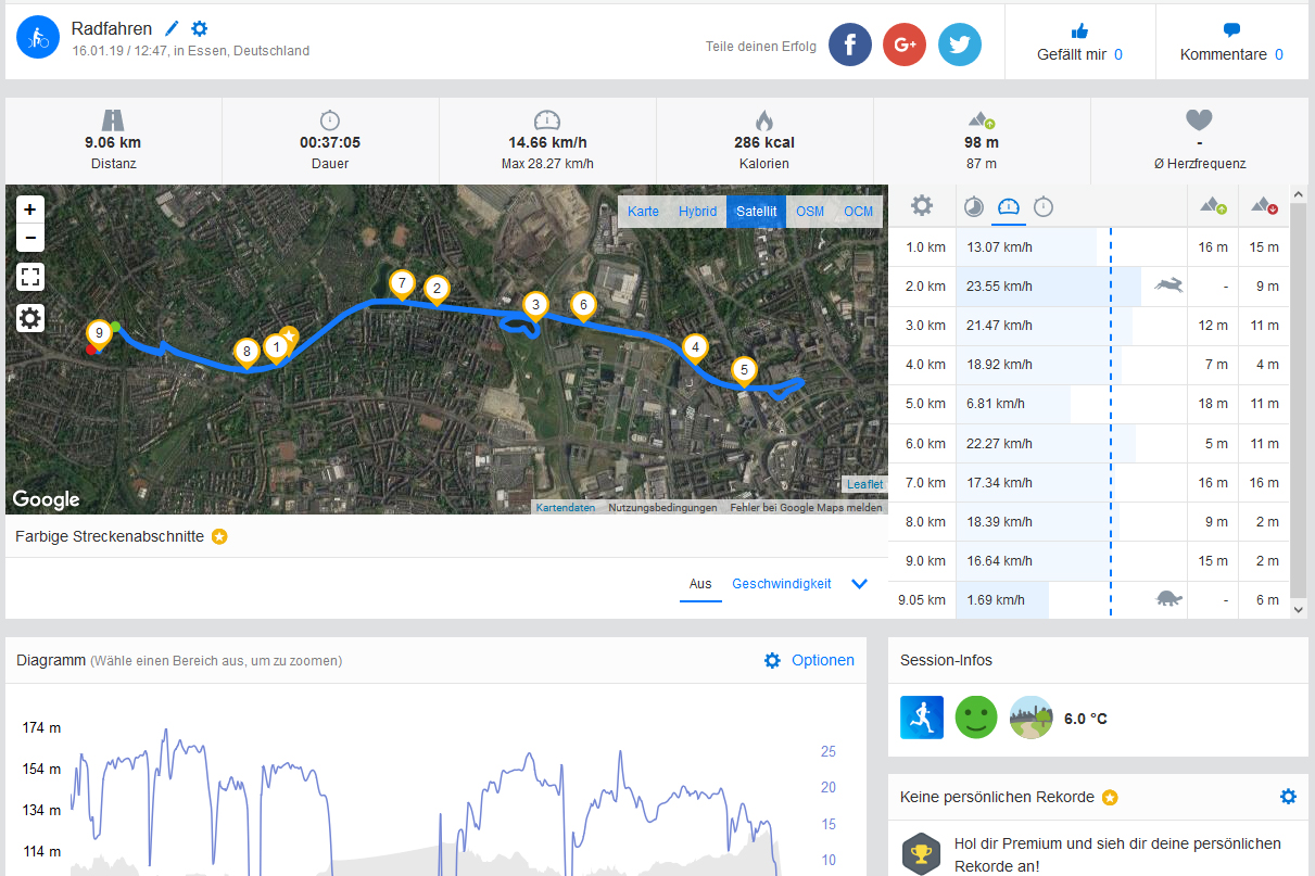 Einen genauso guten Eindruck hinterlässt es auf unserer obligatorischen Fahrradrunde, auf der zum Vergleich wie immer das Profi-Navigationsgerät Garmin Edge 500 mitfährt. Beide liefern sich ein enges Rennen um die exaktere Positionierung und schenken sich dabei nichts.