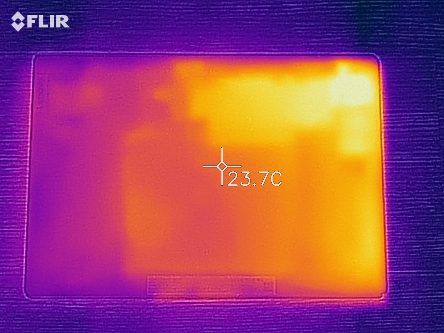 (+) Auf der Unterseite messen wir eine maximalen Wert von 29.4 °C (im Vergleich zum Durchschnitt von 33.2 °C).