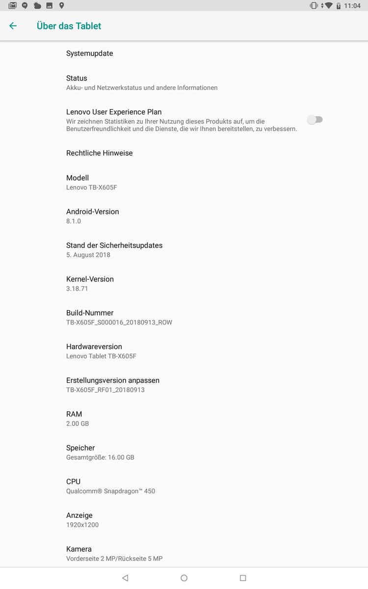 Software - Android 8.1 für das Lenovo Tab M10