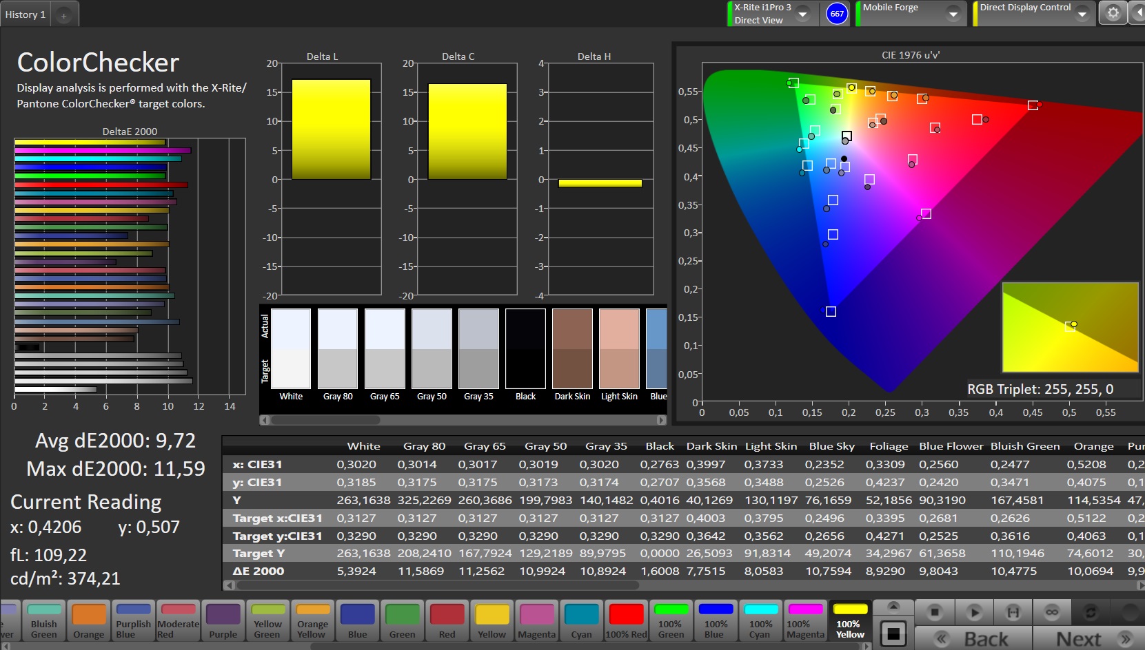 | Delta E Colorchecker * | 9.72 | 6 38% | 10.9 -12% | 2.17 78% |