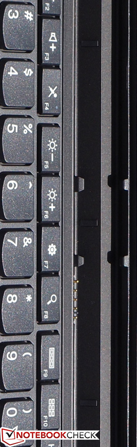 Während das ThinkPad 8 der Konkurrenz in puncto Schnittstellenausstattung etwas voraus ist, bietet das ThinkPad 10 vergleichsweise nichts Besonderes. Micro-HDMI und microSD (unterstützt bis zu 64 GB), ein Micro-SIM-Slot für WWAN-Konfigurationen und die übliche Kombi-Audiobuchse sind vorhanden (ebenso wie beim ThinkPad 8). Entlang der Unterkante gibt es auch Anschlüsse für Docking-Station und Tastatur. Rätselhaft und enttäuschend ist dagegen, dass der USB-Port zwar volle Größe hat, es sich jedoch nur um USB 2.0 handelt. Sogar das ThinkPad 8 bietet USB-3.0. Dafür wird jedoch ein günstiger Adapter benötigt und der USB-3.0-Port dient auch zum Aufladen. Das Dell Venue 11 Pro 5130 hat ebenso einen USB-Port in voller Größe, doch dabei handelt es sich um einen USB-3.0-Port.