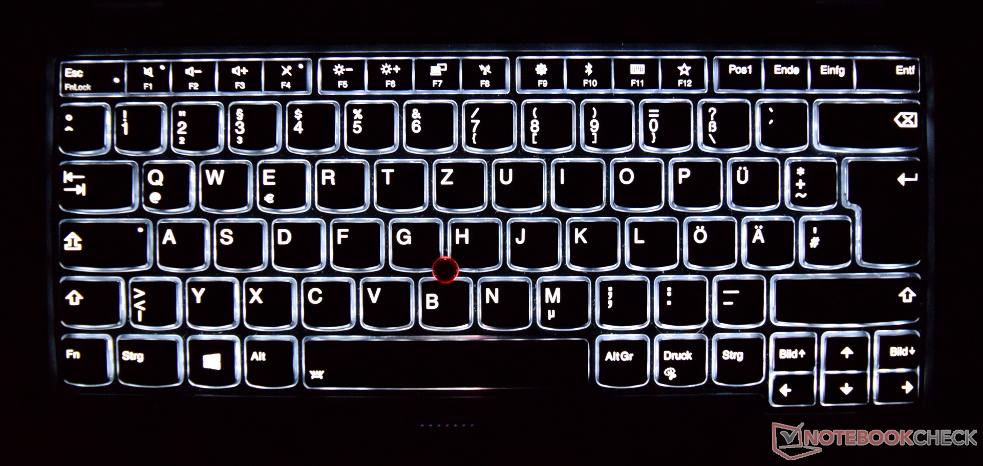 Die Oberflächen der Tasten sind glatt, bieten aber dennoch ausreichend Grip. Die weiße Beschriftung der einzelnen Tasten lässt sich sehr gut ablesen. Die Neuauflage des ThinkPad 13 bietet nun für die Tastatur optional eine Hintergrundbeleuchtung, welche sich in zwei Stufen in der Helligkeit einstellen lässt. In unserem Testgerät ist eine Tastatur mit der benannten Hintergrundbeleuchtung verbaut. Auf der Shop-Seite des Herstellers kann diese optional im weiteren Bestellvorgang ausgewählt werden. Der Aufpreis liegt bei 24 Euro, was unserer Ansicht nach definitiv eine sinnvolle Investition ist.