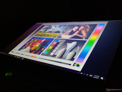 Subjektiv bietet der Full-HD-Bildschirm ein scharfes Bild und das Bild ist auch nicht auffällig körnig, was bei matten Panels oftmals der Fall ist. Im Vergleich zu anderen Touchscreens fehlt dem ThinkPad die schützende Glasschicht, wodurch sich das Panel beim Einsatz der Finger nicht ganz so stabil anfühlt. In der unteren rechten Ecke gibt es minimale Lichthöfe, die in der Praxis aber nicht weiter stören.