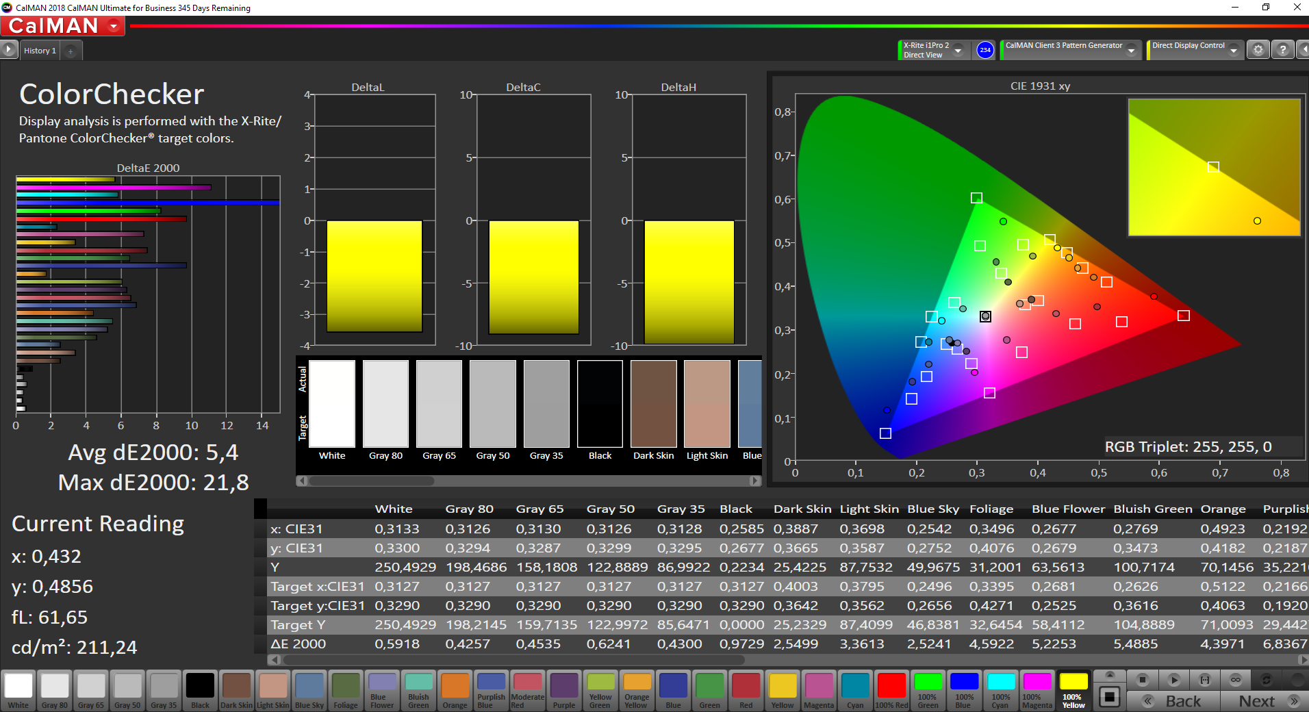 | Colorchecker dE 2000 max. * | 22.1 | 18.4 17% | 22.3 -1% | 10.68 52% | 7.16 68% |