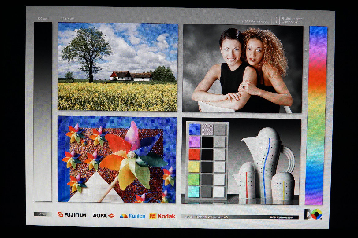 Dagegen eignet sich das Display im Grunde gar nicht für grafisch anspruchsvolle Aufgaben. Es gibt selbst nach einer Kalibrierung erkennbare Farbabweichung. Zumal das Bild im Grunde immer etwas graustichig und blass wirkt. Für die private Fotosammlung mag das noch genügen, für Filme und Spiele auch. Sollen dagegen Grafiken und Bilder bearbeitet und optimiert werden, scheidet das Display völlig aus.