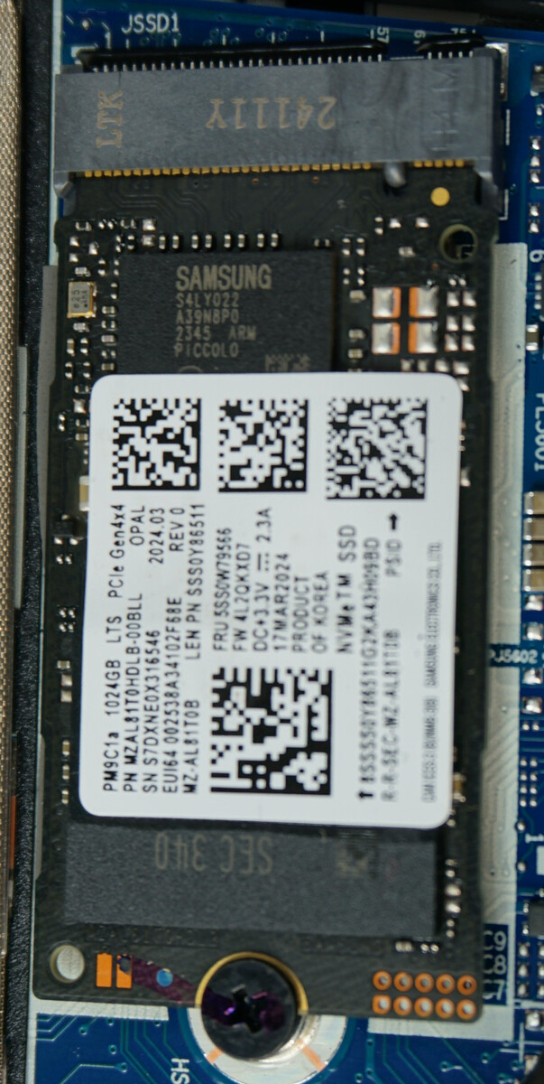 Es findet sich zudem ein freier Slot für eine zusätzliche SSD. Diese darf im Gegensatz zur bereits verbauten und nur 42 mm langen SSD die typischen 80 mm belegen. Eine Erweiterung des Speicherplatzes ist somit ohne Probleme möglich.