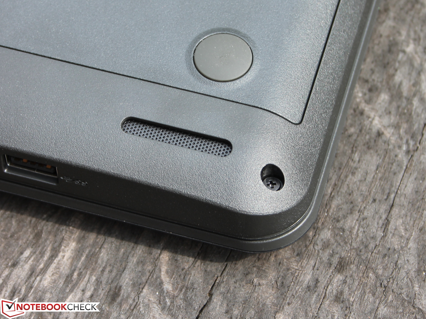 Die Lautsprecher sitzen unter der Handballenauflage und beschallen die Tischplatte. Das ist an sich nicht verkehrt, reflektiert doch die Oberfläche die Schallwellen, was dann laut und relativ klar bei den Ohren ankommt. Wirklich hörenswert ist der Klang aber nicht, speziell voll aufgedrehte Lautsprecher scheppern und dröhnen. Es sollte nicht wundern, Bässe fehlen im Spektrum komplett und differenzierte Höhen gibt es kaum. Es sind also die typischen mittenlastigen Lautsprecher, die den E450 begleiten. Für den Voice-Chat genügen sie, für Filme oder Musik empfehlen wir aber Kopfhörer oder Lautsprecher am Kopfhörerausgang.