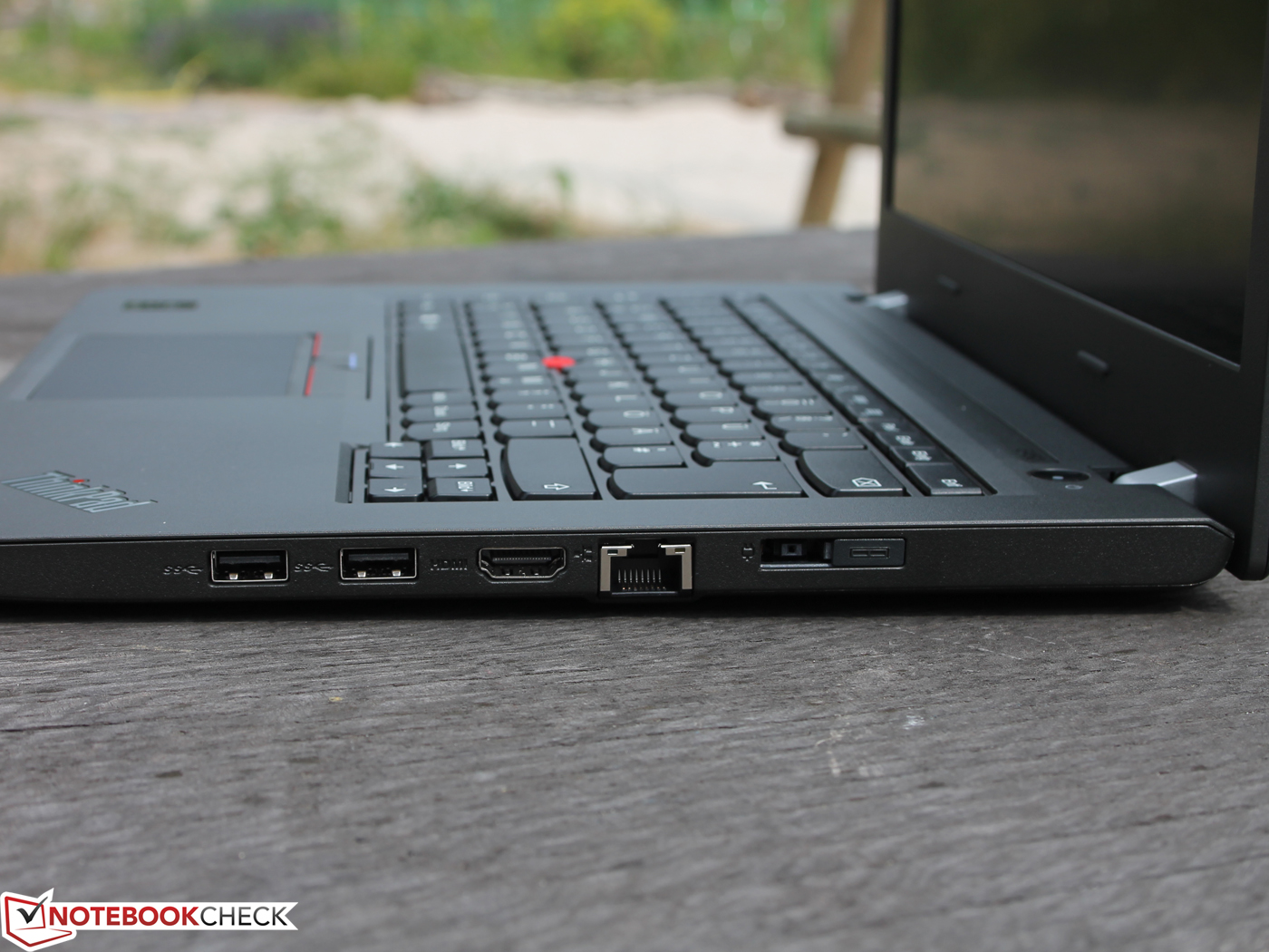 Nur zwei der insgesamt drei USB-Ports beherrschen den schnellen USB-3.0-Standard, in Anbetracht der modernen Broadwell Plattform ist das nicht so recht nachvollziehbar. Einen VGA-Port, wie beim Edge E550, gibt es keinen. Über HDMI (digital) lassen sich lediglich Auflösungen bis maximal 1.920 x 1.080 Pixel ansteuern – der für hochauflösende Monitore erforderliche (Mini-)DisplayPort fehlt dem ThinkPad. Dies gilt allerdings ebenso für die zwei Konkurrenten. Ergänzt wird das Schnittstellenangebot von üblichen Standards wie GBit-LAN, Headset-Buchse und Kartenleser (SD/MMC).