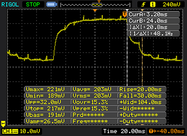 | 23 ms ... steigend ↗ und fallend ↘ kombiniert | ↗ 7 ms steigend | |