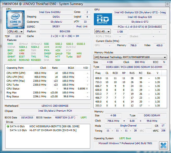 | Lenovo ThinkPad E560 20EV000MGE 6100U, HD Graphics 520 | Lenovo ThinkPad E560-20EWS00000 6500U, Radeon R7 M370 | HP ProBook 450 G3 6200U, HD Graphics 520 | Acer TravelMate P257-M-56AX 5200U, HD Graphics 5500 | Dell Latitude 15 3550-0123 5500U, GeForce 830M | Dell Latitude 15-3570 6200U, HD Graphics 520 | |