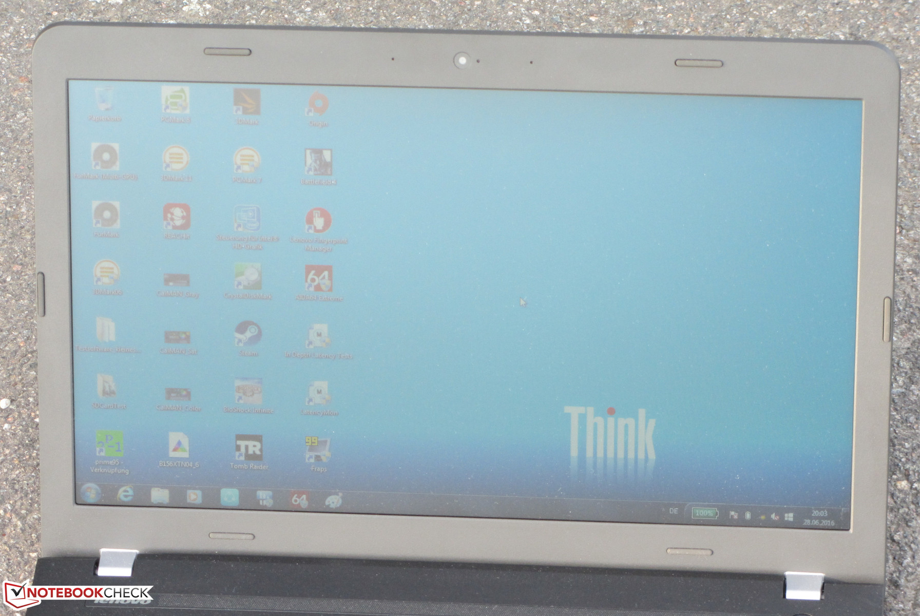 Lenovo stattet das Thinkpad mit einem blickwinkelinstabilen TN-Panel aus. Somit ist der Bildschirm nicht aus jeder Position heraus ablesbar. Das Notebook kann nicht wirklich im Freien genutzt werden. Schuld ist die geringe Displayhelligkeit. Diese erlaubt einen Einsatz im Freien allenfalls bei Bewölkung bzw. in schattigen Umgebungen.