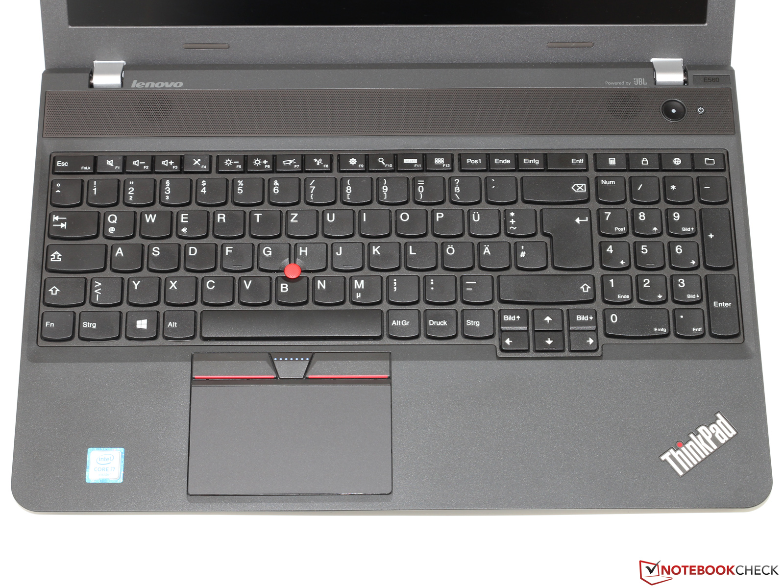 Lenovos ThinkPad-Serie hat seit jeher den Ruf, eine der besten Tastaturen im Notebook-Segment zu bieten – diesem Nimbus wird auch die vergleichsweise günstige E-Serie gerecht. Obwohl das Keyboard in puncto Materialanmutung und Druckpunkt nicht ganz an die gefühlt unverwüstliche Mechanik eines T550 oder T450s herankommt, stellen Feedback und Tippgefühl noch immer beinahe jeden Kontrahenten in den Schatten. Hat man sich erst einmal an den relativ langhubigen und schwergängigen Anschlag gewöhnt, mag man kaum wieder auf einem anderen Laptop schreiben – so geht es zumindest dem Verfasser dieses Artikels. Bedauerlicherweise fehlt dem E560 jegliche Hintergrundbeleuchtung und auch die etwas klapprige Geräuschentwicklung könnte noch ein wenig dezenter ausfallen, was den überaus positiven Gesamteindruck aber kaum trübt.