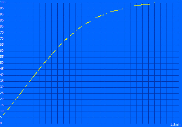 Nach etwas weniger als zwei Stunden ist der Akku wieder voll, was ein gutes Ergebnis ist.