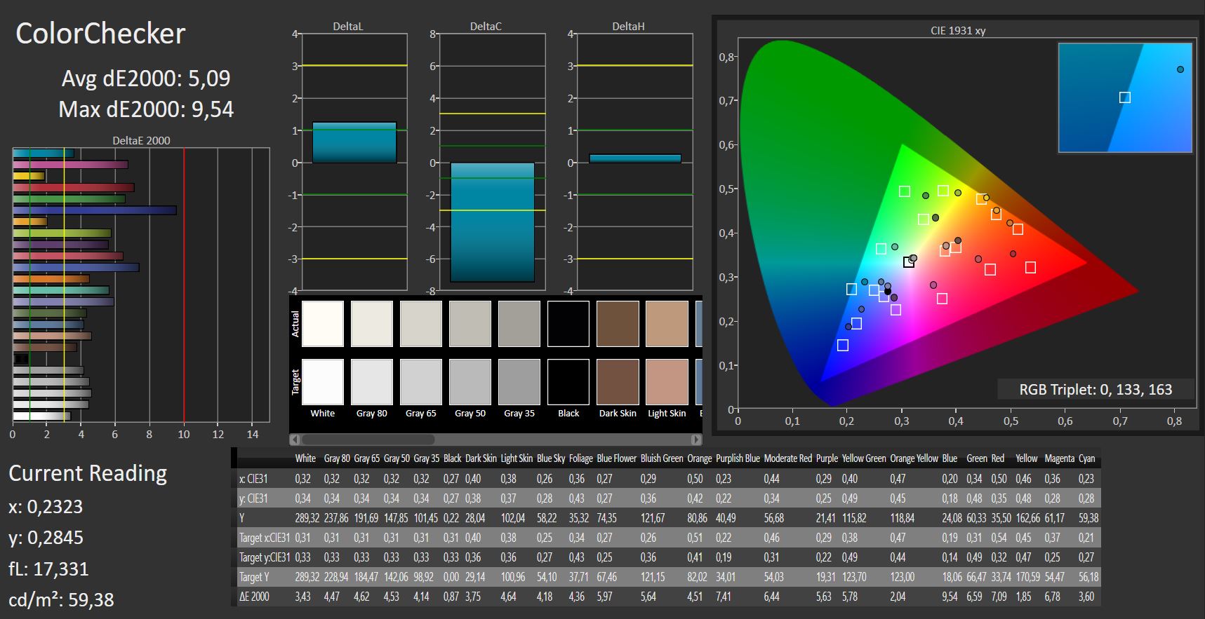 | Delta E Colorchecker * | 4.9 | 10.68 -118% | 5.3 -8% | 5.15 -5% | 4.65 5% |
