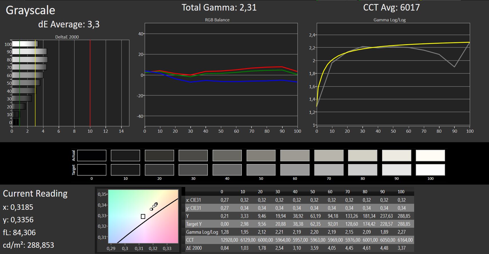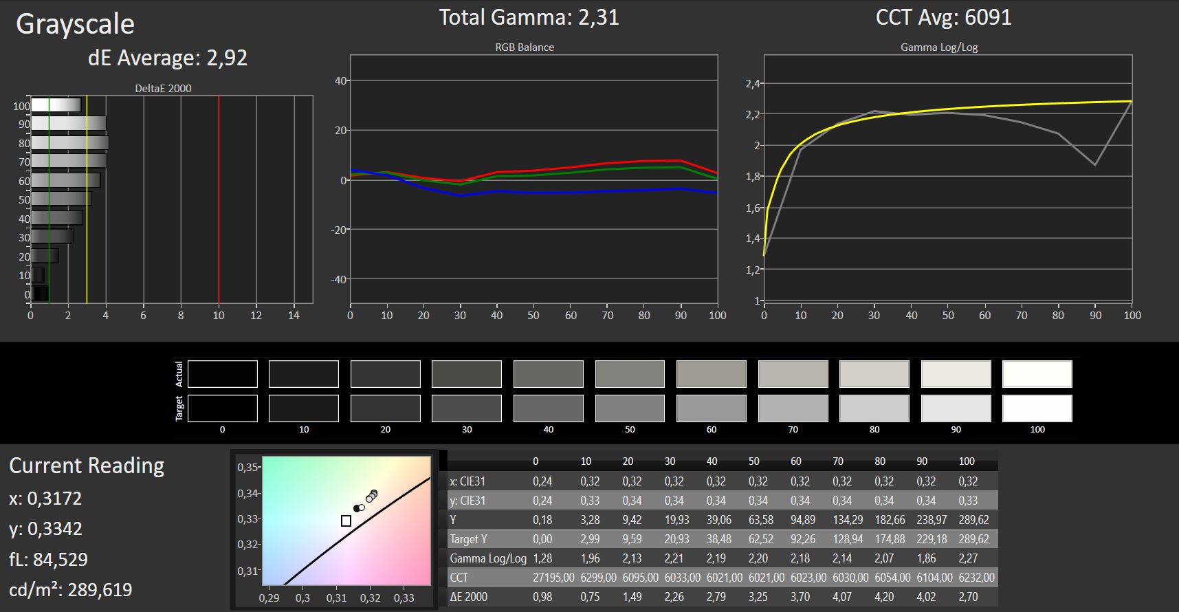 ΔE Greyscale Calman: 2.92 | ∀{0.09-98 Ø5}