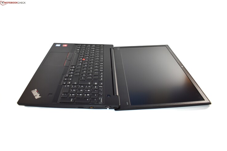 Das Display wird von einem breiten Mono-Drop-Down-Scharnier gehalten. Anders als beim kleineren E-ThinkPad ist beim E580 das Öffnen des Displays mit einer Hand nicht möglich. Ansonsten verrichtet das Scharnier seine Arbeit gut, es hält das Display fest in seiner Position. Erstmals seit dem ThinkPad Edge E520 kann man bei der 15,6-Zoll großen E-Serie das Display wieder auf 180 Grad öffnen.