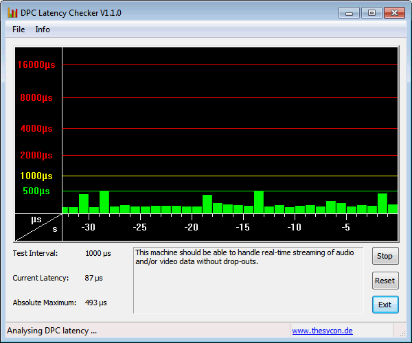 Wenn der Pentium Prozessor inklusive seiner Grafik durch Benchmarks belastet wird (Stresstest), so steigt der Pegel auf bis zu 34.8 dB(A) und dreht dann konstant. Wenn nur die GPU rechnet, sind es mit 33.8 dB(A) etwas weniger.