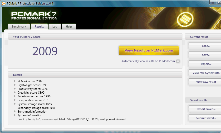 Wir prüfen das mit System-Benchmarks, welche HDD, RAM, GPU-Hardwareunterstützung etc. prüfen. Der PCMark Vantage ermittelt einen Score von 5.457 Punkten. Ein E-350 System schafft mit AMD E-350 nur 2.600 Punkte (ThinkPad X120e). Der AMD-Vorgänger Edge 13 (K685) brachte es immerhin auf 3.753 Punkte. Den PCMark 7 schließt unser E320 mit 2.009 Punkten. Die 1.101 Punkte eines Fusion E-350 Systems (ThinkPad X120e) liegen in weiter Ferne.