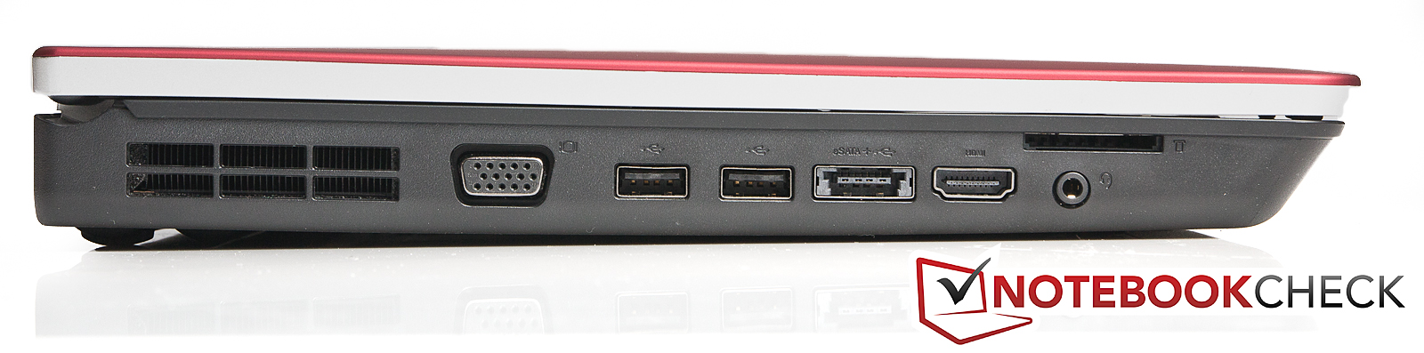 Bei der Anordnung der Anschlüsse das gleiche Bild: Bis auf die Netzwerkbuchse, die an die Rückseite gewandert ist, verteilen sich sämtliche Anschlüsse an den beiden Gehäuseseiten. Problematisch kann es auf der rechten Seite mit dem USB-Anschluss und dem ExpressCard-Slot werden. Die beiden Anschlüsse liegen direkt übereinander. Ist einer der angeschlossenen Stecker etwas ausladender, wird man den anderen Port wahrscheinlich nicht mehr nutzen können.