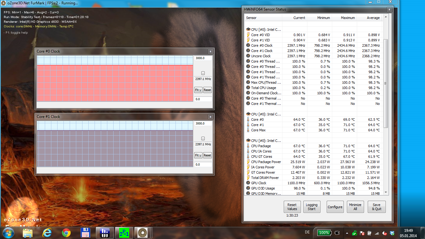 Die in unserem Testgerät verbaute CPU Intel Core i3-4000M (2 x 2,4 GHz, kein Turbo, Hyperthreading, TDP 37 W) ist für einen durchschnittlichen Office-Rechner dieser Größe, der nicht schwerpunktmäßig mobil ohne Netzanschluss genutzt werden soll, eine gute Wahl und wird durch die übliche Bürosoftware zumeist unterfordert. Die CPU macht auch bei rechenintensiveren Programmen wie etwa Adobe Photoshop Lightroom 4 nicht schlapp. Wer nicht bei Photoshop mit riesigen Dateien hantiert oder Videoschnitt betreibt, dürfte die 4 GB RAM kaum ausschöpfen.