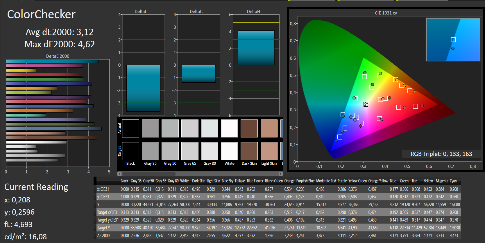 ΔE ColorChecker Calman: 3.12 | ∀{0.5-29.43 Ø4.78}
