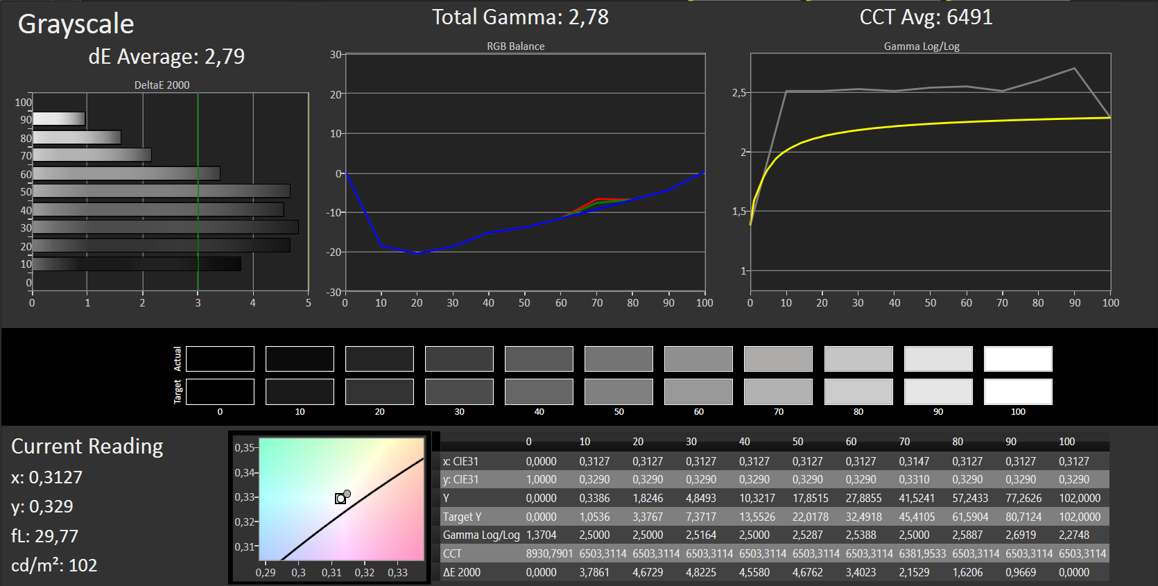 ΔE Greyscale Calman: 2.79 | ∀{0.09-98 Ø5}