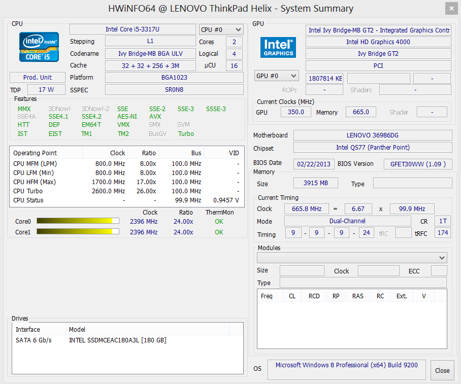 Da Lenovo das ThinkPad Helix bereits Anfang des Jahres auf der CES in Las Vegas vorgestellt hat, basiert es noch nicht auf Intels neuester Chip-Generation Haswell. Stattdessen kommen ULV-Prozessoren der Ivy-Bridge-Serie zum Einsatz, beginnend mit dem Core i5-3317U bis hin zum High-End-Modell Core i7-3667U.