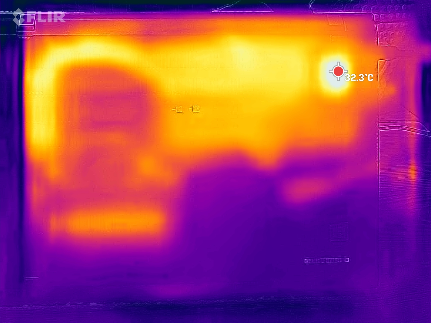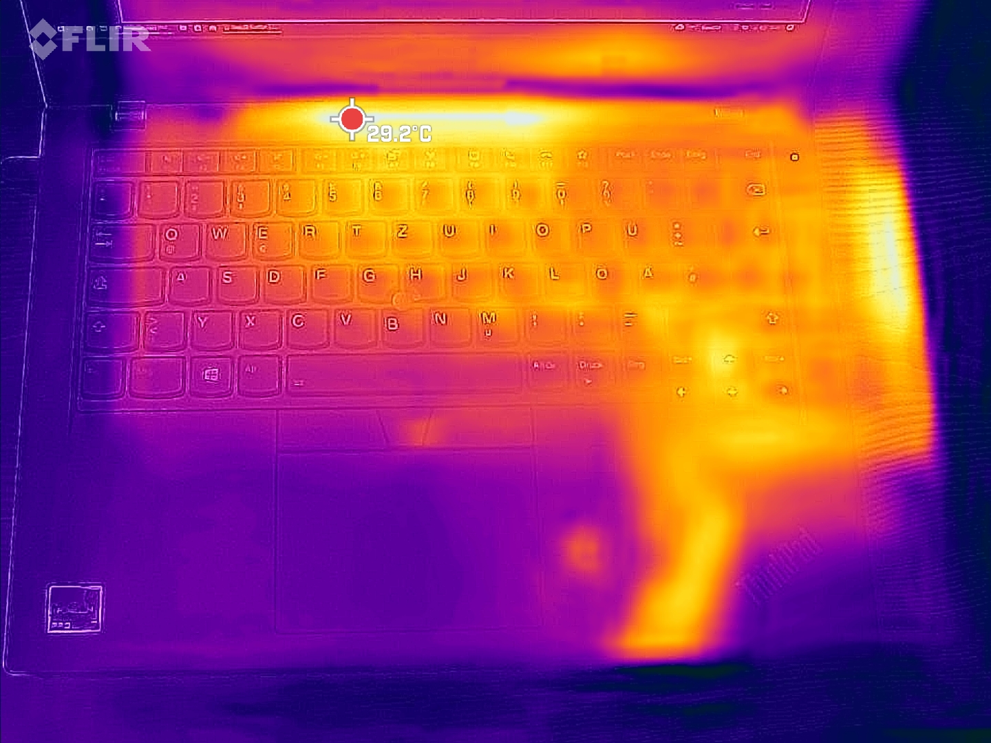 (+) Die Handballen und der Touchpad-Bereich sind mit gemessenen 29 °C kühler als die typische Hauttemperatur und fühlen sich dadurch kühl an.