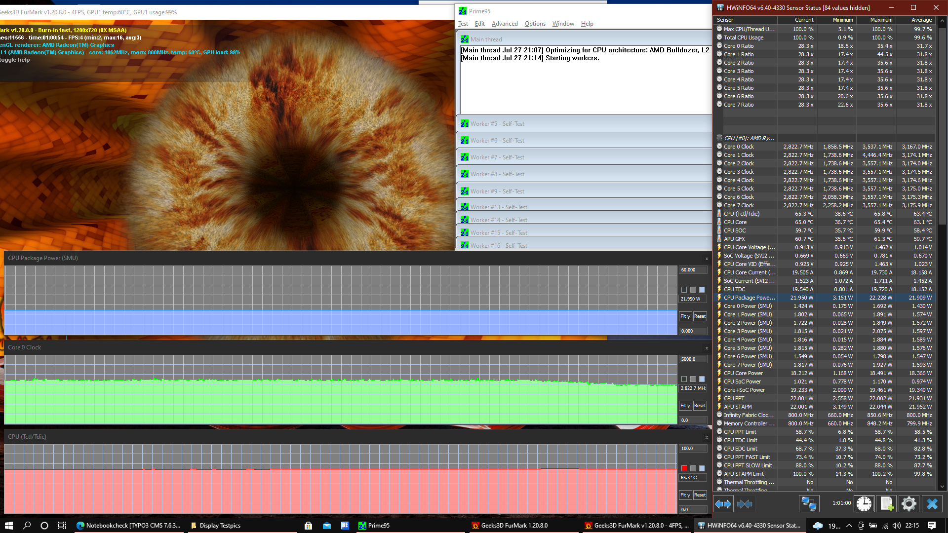 Im CPU/GPU-Stresstest kann der Prozessor durchgehend 22 Watt verbrauchen. Die CPU-Temperatur liegt konstant bei 65 °C und es gibt CPU-Taktraten von 2,8 GHz. Throttling ist beim ThinkPad L14 Gen 2 absolut kein Problem.