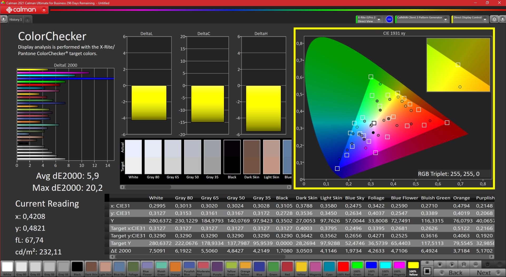 ΔE ColorChecker Calman: 5.9 | ∀{0.5-29.43 Ø4.78}