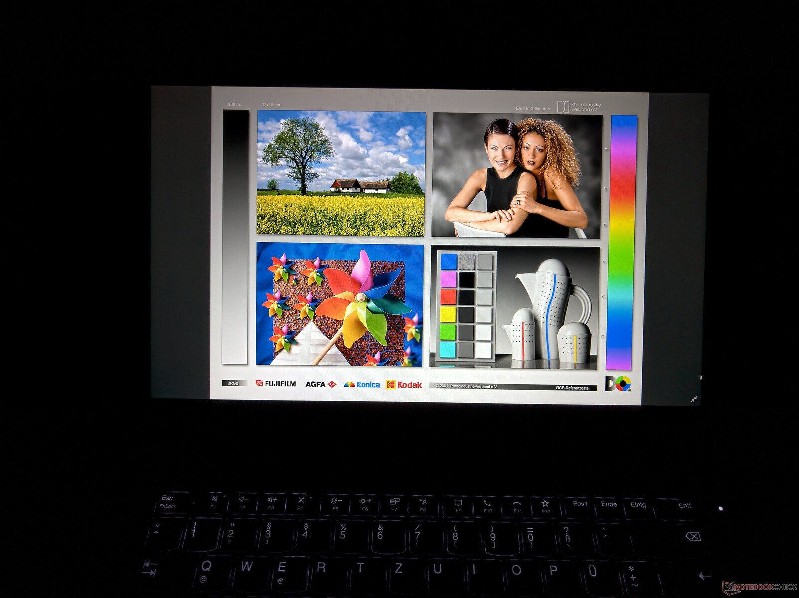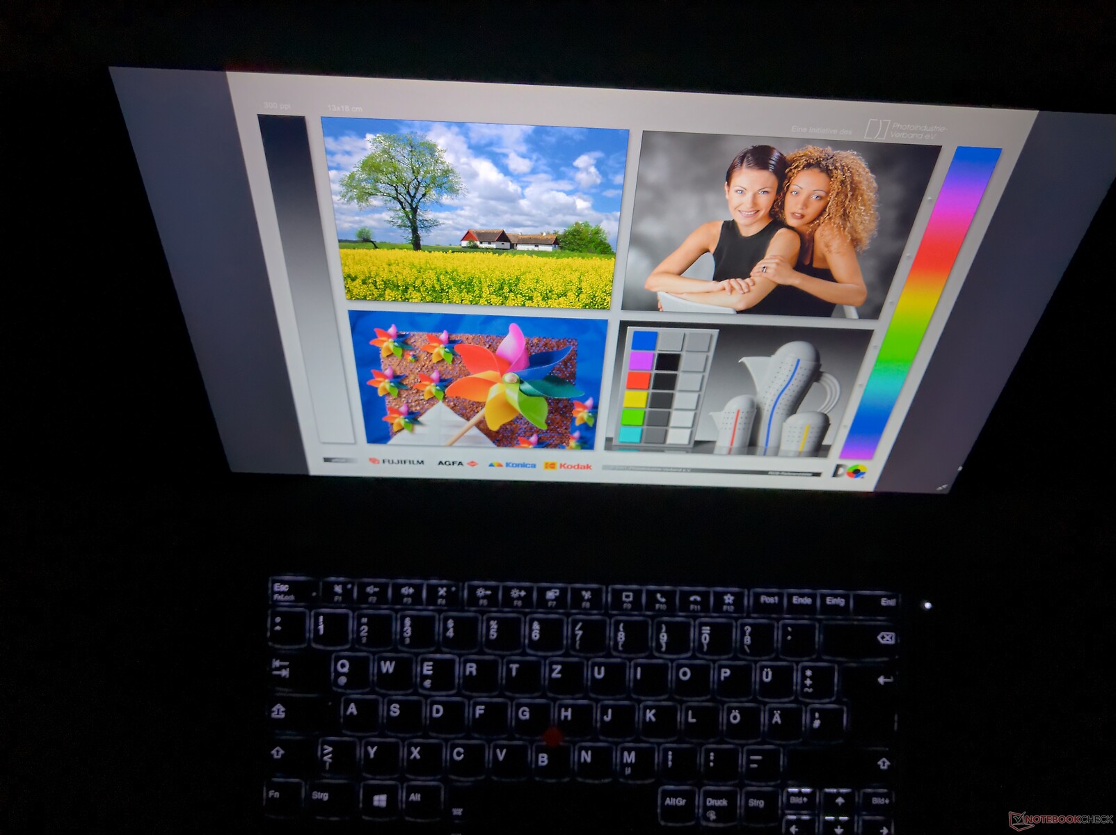 Der in diesem Testgerät verbaute Monitor erfüllt den versprochenen Helligkeitswert, als durchschnittlichen Maximalwert haben wir 255 cd/m² gemessen. Das entspricht der Klasse des günstigen Business-Laptops und zeigt einen deutlichen Unterschied zur höherwertigen T-Serie auf. Wenn verfügbar sollte auf jeden Fall das Low-Power-Display mit 400 cd/m² gewählt werden.