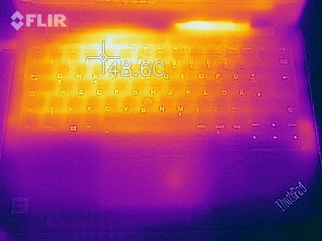 (+) Die Handballen und der Touchpad-Bereich sind mit gemessenen 24.7 °C kühler als die typische Hauttemperatur und fühlen sich dadurch kühl an.