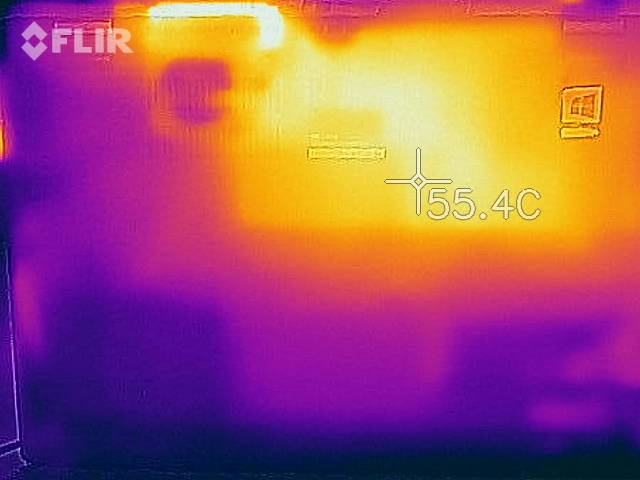 (-) Auf der Unterseite messen wir eine maximalen Wert von 50.7 °C (im Vergleich zum Durchschnitt von 36.8 °C).