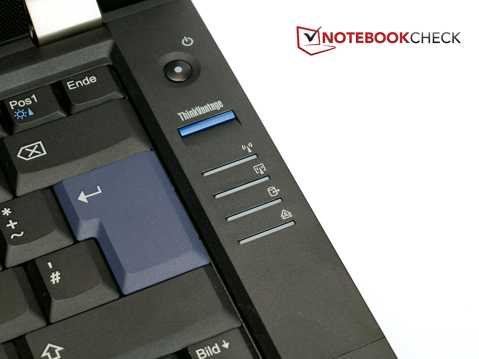 Links und rechts neben der Tastatur befinden sich einige Sondertasten. Während sich auf der linken Seite, Tasten für die Lautstärkesteuerung befinden, befinden sich rechts die ThinkVantage Taste und die Statusleuchten. Hinter der ThinkVantage Taste befindet sich die ThinkVatage Toolbox. Mit ihr lässt sich der Zustand des Systems überprüfen oder Treiberupdates laden.