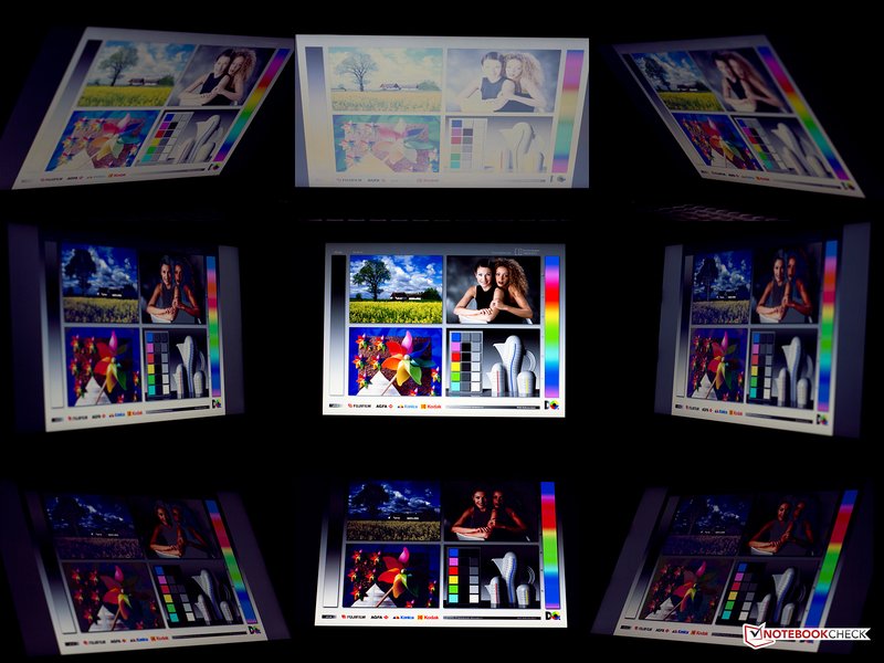 Die Blickwinkelstabilität konnte uns leider nicht überzeugen. Schaut man frontal auf das Notebook, kann man auch mit mehreren Personen vor dem Display stehen und jeder erkennt das Bild fehlerfrei. Neigt man das Display allerdings nach oben oder unten, wird das Bild recht schnell verfälscht.