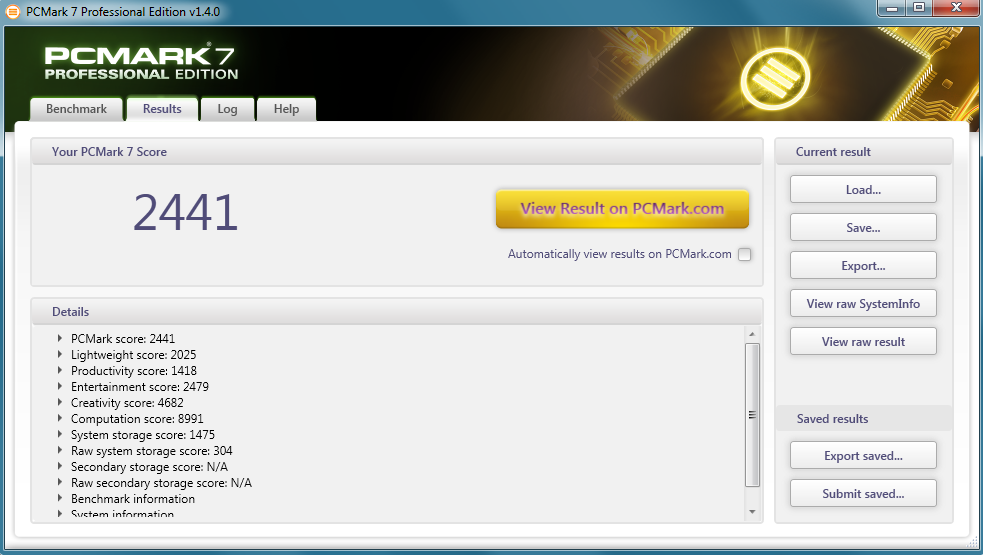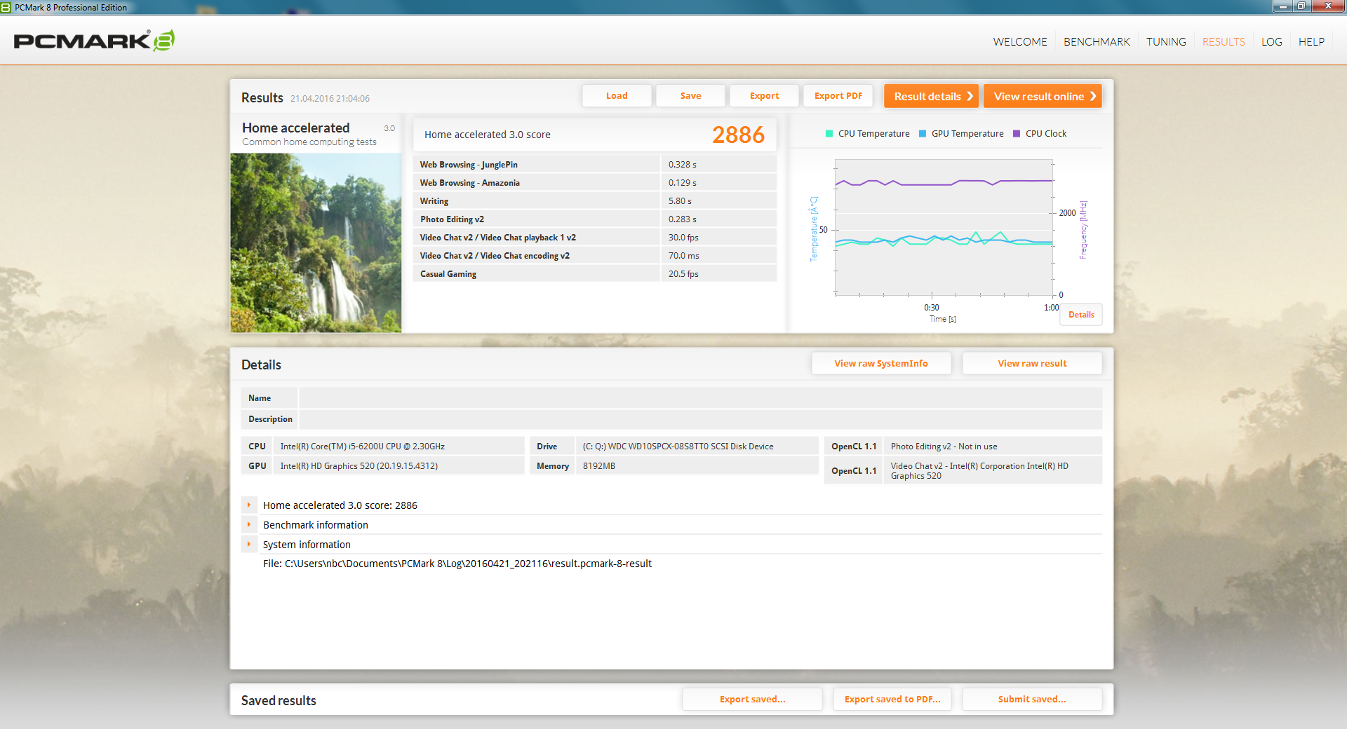 | PCMark 8 Home Score Accelerated v2 | 2886 Punkte | |