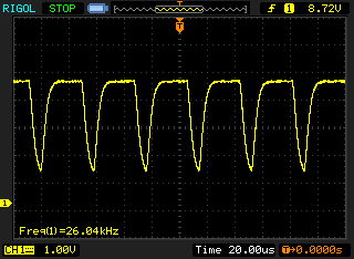 | PWM Frequency (Hz) | 26040 ? | 21370 ? | 1020 ? | 1000 | 59.5 ? | |