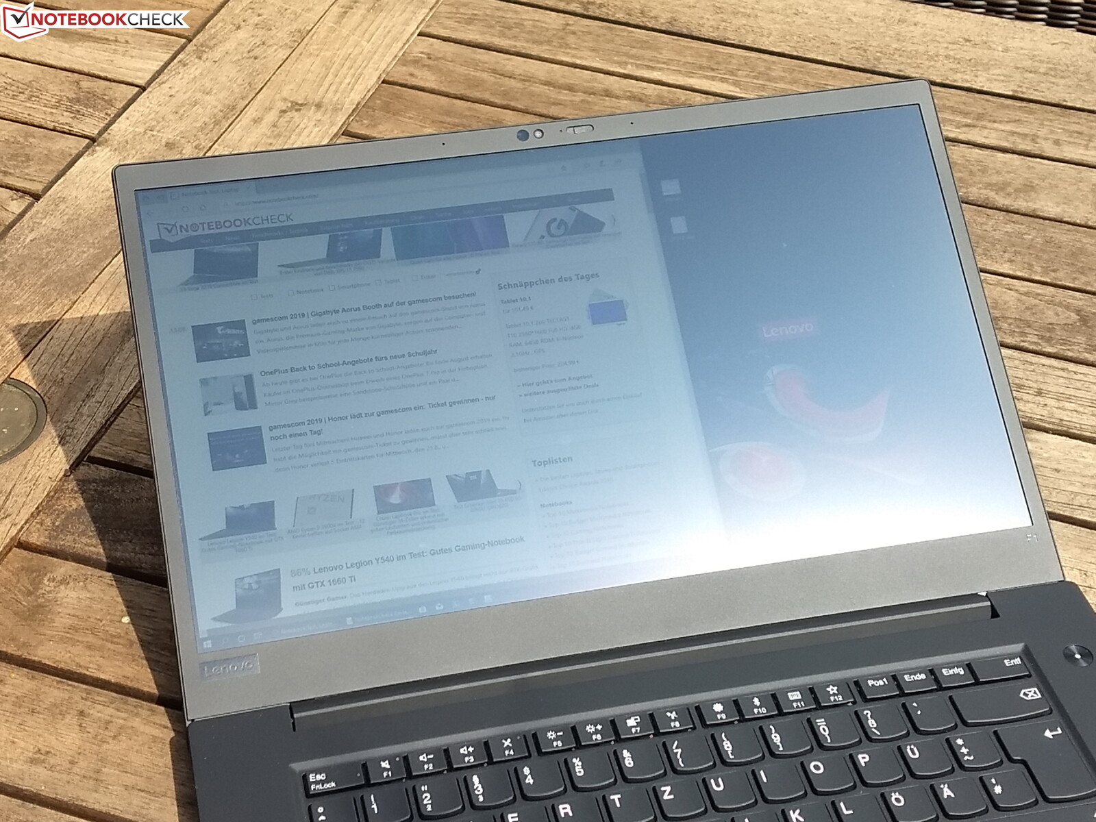 Eine besondere Stärke des verbauten Bildschirms ist der Einsatz im Außenbereich. Die Helligkeitswerte von über 500 cd/m² und die matte Oberfläche ermöglichen die Nutzung des Lenovo ThinkPad P1 2019 in der Sonne – zumindest, so lange die Sonne nicht direkt auf den Monitor scheint.