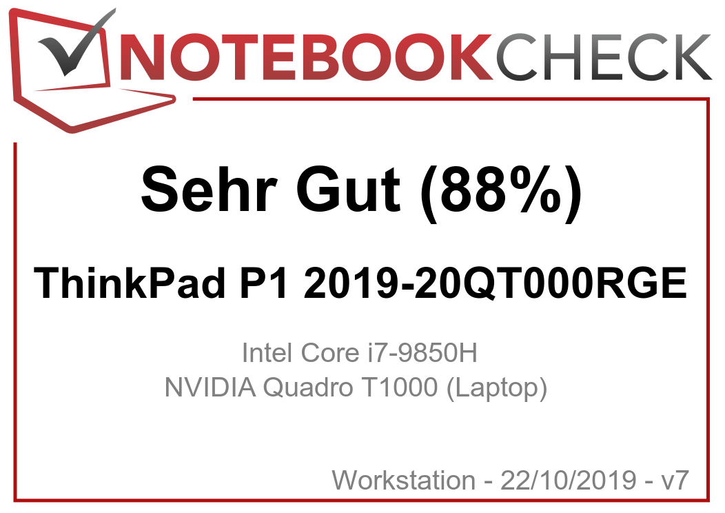 Hinweis: Mit dem Update auf unser neues Wertungssystem v7 (siehe hier) hat sich die Bewertung des ThinkPad P1 2019 von 90 % auf 88 % reduziert.