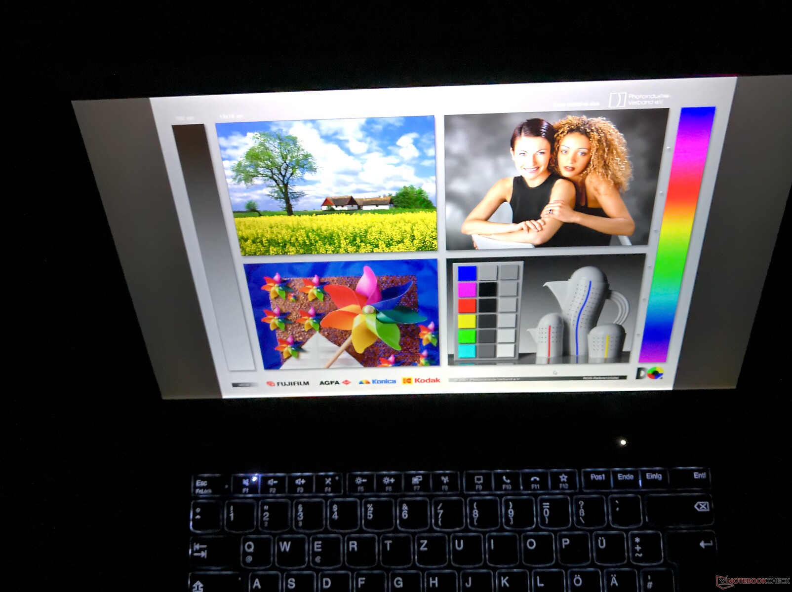 Die Farbraum-Abdeckung von 98,5 % sRGB entspricht dem Standard bei Laptops der oberen Mittelklasse. Somit kann der Bildschirm problemlos für semi-professionelle Bildbearbeitung genutzt werden.