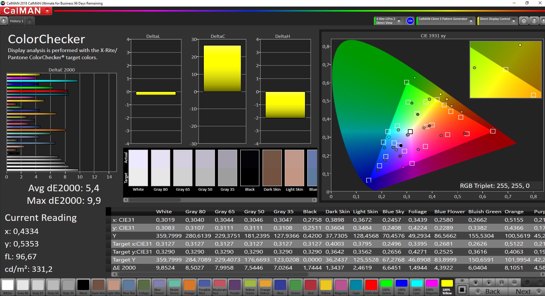 ΔE ColorChecker Calman: 5.4 | ∀{0.5-29.43 Ø4.78}