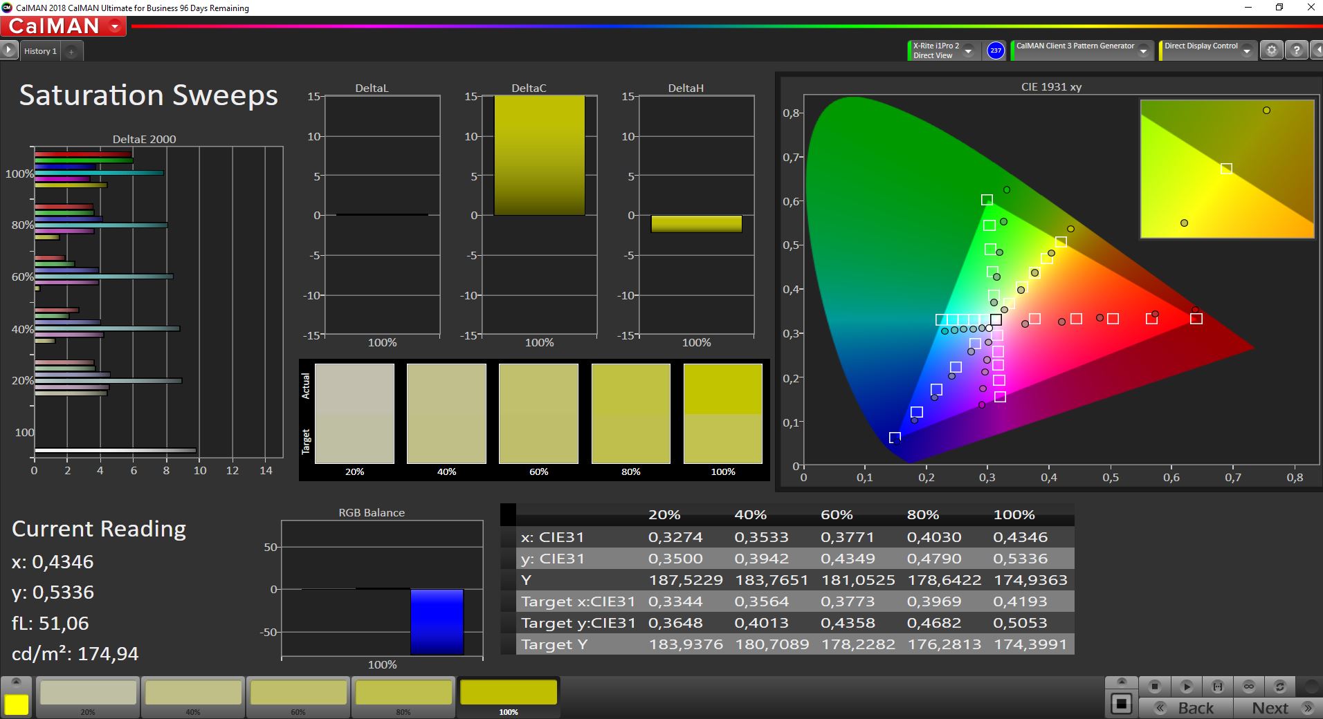 | Delta E Graustufen * | 6.5 | 5.1 22% | 2.9 55% | 3.5 46% | 0.8 88% |
