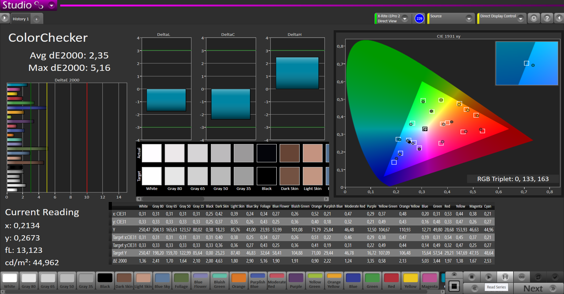 + ordentliche Ergebnisse mit dem eingebauten Colorimeter