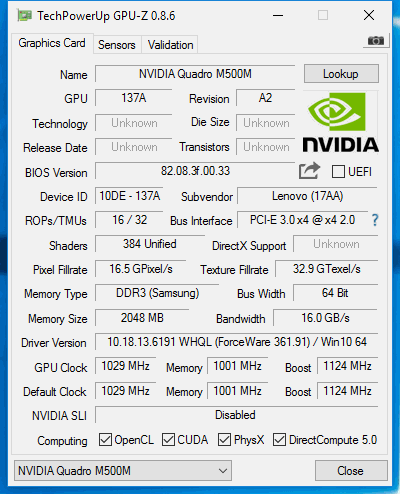 | Lenovo ThinkPad P50s-20FKS00400 Intel Core i7-6500U, NVIDIA Quadro M500M | Dell Precision 5510 Intel Xeon E3-1505M v5, NVIDIA Quadro M1000M | HP ZBook 15u G3 Intel Core i7-6600U, AMD FirePro W4190M | MSI WS60-6QJE316H11 Intel Xeon E3-1505M v5, NVIDIA Quadro M2000M | Lenovo ThinkPad P50 Intel Core i7-6820HQ, NVIDIA Quadro M2000M | Lenovo ThinkPad W550s 20E2-000PGE Intel Core i7-5500U, NVIDIA Quadro K620M | |
