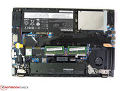 Eine Wartungsklappe ist nicht vorhanden, weshalb man für den Zugang zu den Komponenten die gesamte Bodenwanne entfernen muss. Diese ist mit 8 Schrauben und zahlreichen kleinen Plastikclips gesichert, die leicht abbrechen können. Hier muss man also sehr vorsichtig vorgehen, um keine der Clips zu beschädigen. Sobald die Wanne einmal entfernt ist, hat man Zugriff auf alle wichtigen Komponenten, darunter die beiden RAM-Slots, die Festplatte, die WLAN- und (optional) WWAN-Module sowie die Kühlung samt Lüfter. Weitere Informationen zur Wartung sind auch im Hardware Maintenance Manual und dem User Guide verfügbar. Beide Dokumente sind im Support-Bereich von Lenovo zugänglich. Die nachfolgenden Bilder stammen vom baugleichen Vorgänger ThinkPad W550s.
