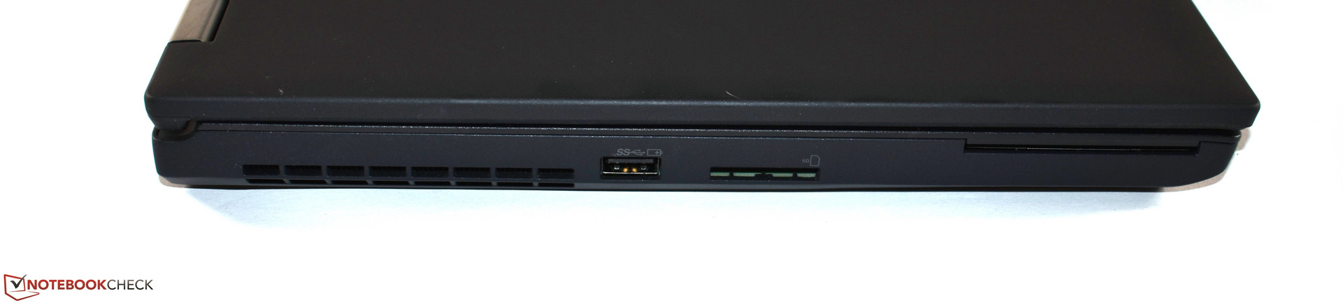 Ebenso entfällt der Expresscard-34-Slot, der sich vorher auf der linken Seite befand. Der Grund dafür ist vermutlich, dass Lenovo den Lüfter auf der linken Seite vergrößert hat, um die Nvidia Quadro P3200 effektiv kühlen zu können – das Kühlsystem des ThinkPad P51 war maximal für die Quadro M2200 ausgelegt. Dadurch verändert sich die Positionierung einiger Anschlüsse etwas: Hinten gibt es nun keinen USB-A-Anschluss mehr, vorher waren dort zwei der vier USB-A-Ports platziert. Stattdessen sitzt nun der dritte USB-A-Anschluss auf der linken Seite. Die Anschlusspositionierung ist kaum kritikwürdig, nur auf der rechten Seite könnte es bei den eng sitzenden Anschlüssen potenziell zu einer Blockade kommen.