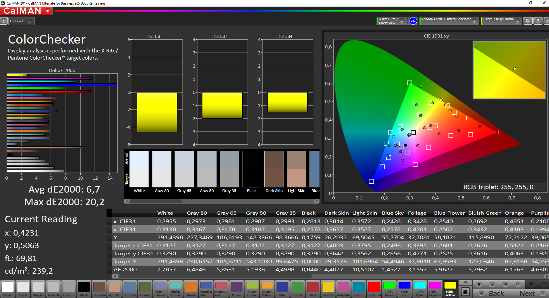 ΔE ColorChecker Calman: 6.7 | ∀{0.5-29.43 Ø4.77}